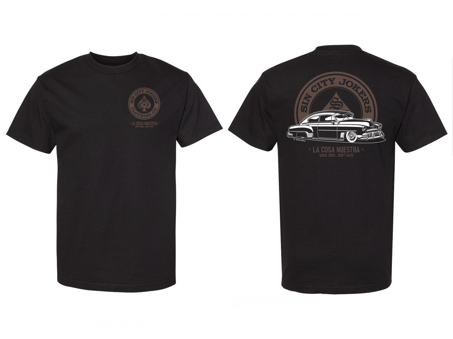 Check out the new 'Cosa Nuestra 52 Fleetline' men's tee! Printed in a brownish color and bright white with the SCJ catch phrase "SINCE 2008..DON'T HATE" at the bottom under "La COSA NUESTRA" which translates to 'Our Thing'. How cool is this thing of ours!